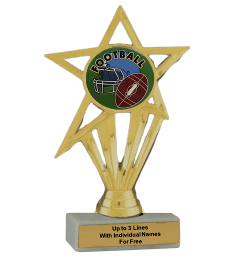 Our economy insert trophy features a real white marble base with a gold insert holder and 2" Football insert. Measures approximately 6 7/8" - 7 1/8" tall. Add up to three lines of text personalized engraving for free, including individual names! Perfect for football season recognition and championship honors. Ships from: Marquette, Michigan. SKU: football-e-part-i-tc.