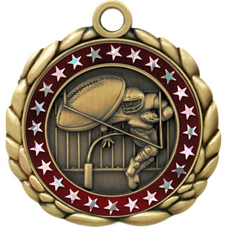 These well-priced Football 2 1/2" medals come with a customized outer-ring which allows you to add your school, organization or event name, date and location, school name, etc. Price includes choice of ribbon and also includes the cost of the custom ring personalization setup charge (medals must be the same). Processing time is typically 8 days. An optional rush service is available. Perfect for football season recognition and championship honors. SKU: qcm-13-scl.