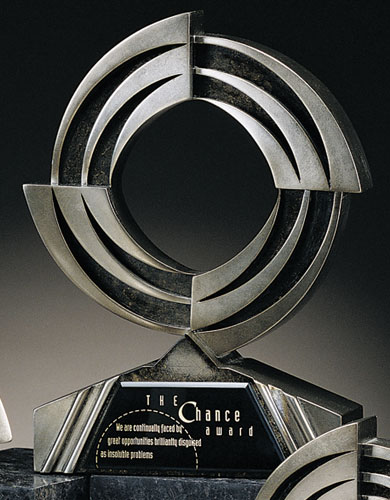 Circles of continual achievement. Gilded antiqued platinum finish with textured black accents. Available in 3 sizes - select below. Please send any camera-ready artwork to sales@trophycentral.com; artwork must be in vector format (ex.eps or.ai file). Please Note: personalized engraving & artwork are for illustrative purposes only; all awards start blank. If you would like a design similar to one shown on a sample, please contact us for availability or pricing. Outstanding for celebrating art skills and dedication. SKU: ft7305x-va.