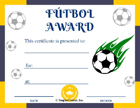 This is a free futbol certificate template! Our free certificates were designed to be printable and use less ink to save you money. Simply press the View Now Button and then right click on the image and select Save File to download it. Award certificates measure 8 1/2" x 11". Outstanding for recognizing achievement and success. SKU: futbol-free-tc.