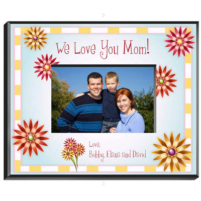 Moms deserve love all year round, but you can make her feel extra special on Mother's Day (or any day!) with this whimsical and colorful Mom in Flowers frame that tells her how much you care. Adorned with your choice of message, this frame also features bright flowers and an attractive yellow and white border. Frame measures 8" x 10" and holds a 4" x 6" picture. The top text line can accommodate 35 characters while the bottom two text lines features up to 20 characters per line. Ships from: Corcoran, Minnesota. SKU: gc468-jds.