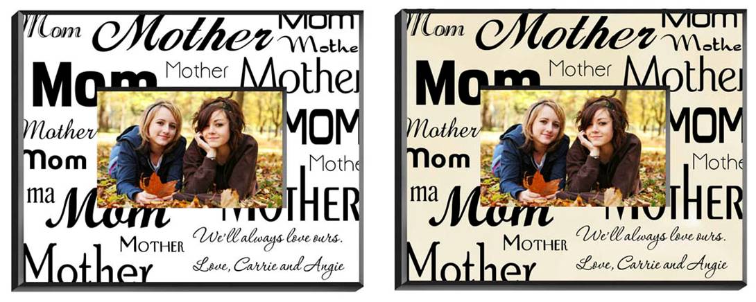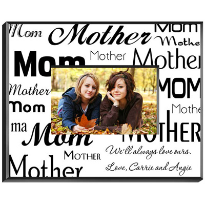 This attractive frame is a warm addition to any room in the house. Featuring the words mom and mother in a variety of font styles, this personalized frame call attention to the special lady in your life and provides space for a personalized message to tell her just how much she means to you. Frame measures 8" x 10" and holds a 4" x 6" picture. Each line can be personalized with up to 20 characters. Available with white or parchment background. Ships from: Corcoran, Minnesota. SKU: gc469-jds.