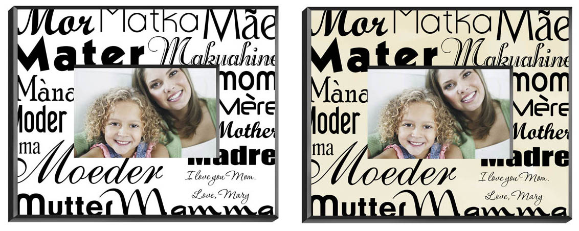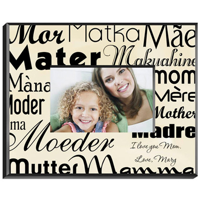 Mother means love in any language! Honor your mom with this attractive personalized frame featuring the word mother in 14 different languages and bold fonts. Available in dazzling white or a muted parchment hue, this item can be inscripted with two lines of personalization. Frame measures 8" x 10" and holds a 4" x 6" picture. Each line can be personalized with up to 20 characters. Available in white or parchment background. Ships from: Corcoran, Minnesota. SKU: gd470-jds.
