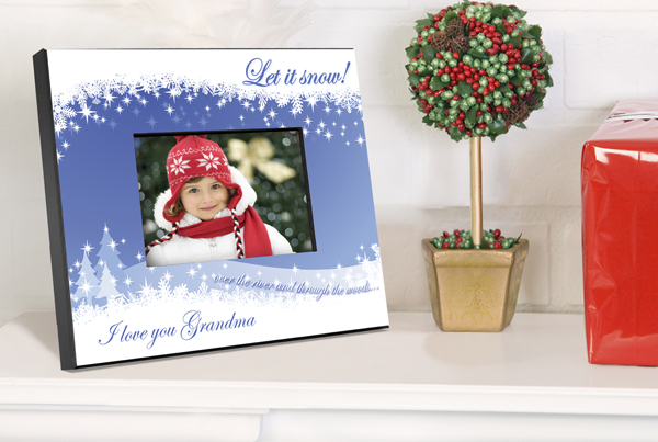 Deck the halls with this beautiful personalized Snowscapes picture frame, a great gift for anyone on your list. Our whimsical yet sturdy picture frame looks great on the mantel, the piano, or anywhere you want to show them off! This full color design features special Let It Snow and over the river and through the woods messages and provides plenty of room for names or a short personal sentiment. Frame measures 8" x 10" and holds a 4" x 6" photo. Personalize with one line of up to 30 characters. Ships from: Corcoran, Minnesota. SKU: gc763snowscapes-jds.