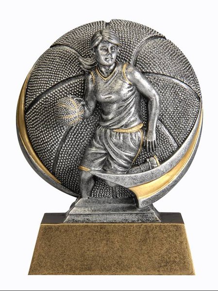 Our Motion Xtreme Series girls basketball series features a gold resin base and free personalized engraving. Approximately 5" tall. Please press the cart / personalization button to enter your award text. Ideal for basketball season competitions and playoff celebrations. Ships from: Topeka, Indiana. SKU: mx508-tw.