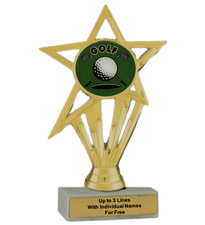 Our economy insert trophy features a real white marble base with a gold insert holder and 2" Golf insert. Measures approximately 6 7/8" - 7 1/8" tall. Add up to three lines of text personalized engraving for free, including individual names! Great for golf season events and tournament recognition. Ships from: Marquette, Michigan. SKU: golf-e-part-i-tc.