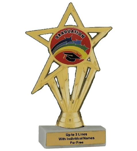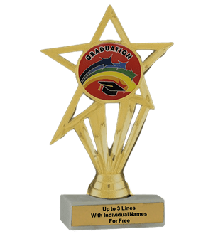 Our economy insert trophy features a real white marble base with a gold insert holder and 2" Graduation insert. Measures approximately 6 7/8" - 7 1/8" tall. Add up to three lines of text personalized engraving for free, including individual names! A wonderful choice for rewarding excellence and victory. Perfect for graduation ceremony celebrations and academic milestones. Ships from: Marquette, Michigan. SKU: graduation-e-part-i-tc.