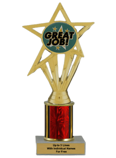 Our economy insert trophy features a real marble base, a 2-inch insert and up to 3 lines of free personalized engraving. Choice of 4 sizes and many column colors. Add up to three lines of text personalized engraving for free, including individual names! Topper: Great Job Insert. Ships from: Marquette, Michigan. SKU: great-job-e-single-i-tc.
