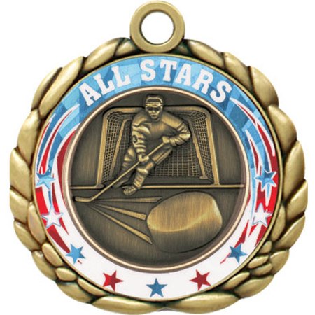 These well-priced Hockey 2 1/2" medals come with a customized outer-ring which allows you to add your school, organization or event name, date and location, school name, etc. Price includes choice of ribbon and also includes the cost of the custom ring personalization setup charge (medals must be the same). Processing time is typically 8 days. An optional rush service is available. Wonderful for honoring accomplishments and milestones. SKU: qcm-18-scl.