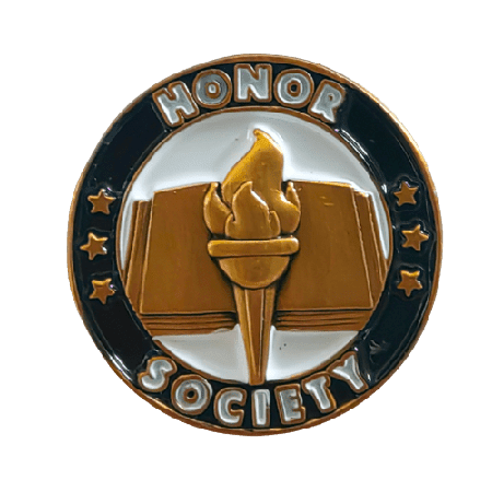 Discontinued (slightly imperfect) - 50%+ off!. These Honor Society enamel lapel pins feature a black color-fill for a unique look. The pin back includes a clutch-pin for easy and safe attachment to clothing. Measures 7/8". Minimum Quantity: 10. SKU: honor-soc-pb-TC.