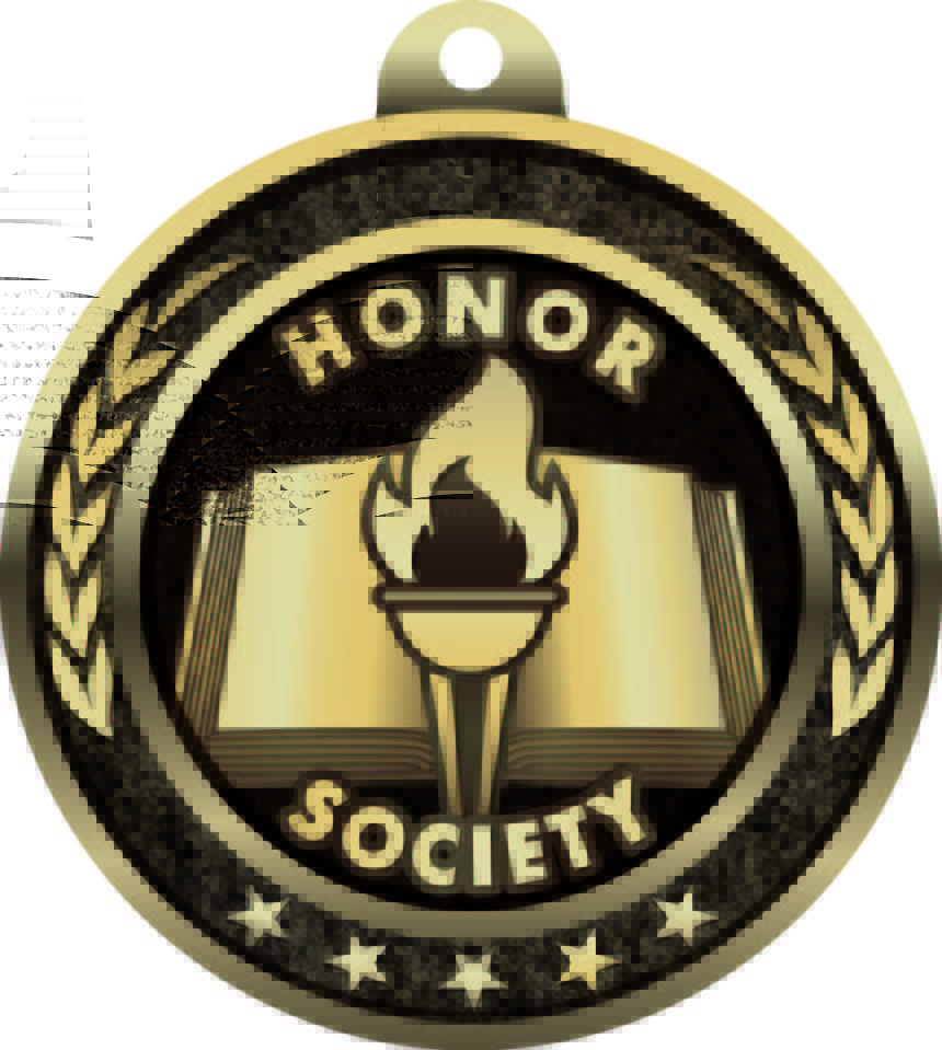 Our antique gold honor society medal was designed exclusively for Trophy Central! Each medal features a black color-fill for a unique look and includes a red, white and blue neck ribbon. Medal measures 2 1/4". Optional personalization on back. SKU: honor-society-mg-tc.
