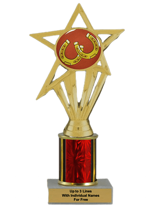 Our economy insert trophy features a real marble base, a 2-inch insert and up to 3 lines of free personalized engraving. Choice of 4 sizes and many column colors. Add up to three lines of text personalized engraving for free, including individual names! Topper: Horeshoes Insert. Ships from: Marquette, Michigan. SKU: horeshoes-e-single-i-tc.