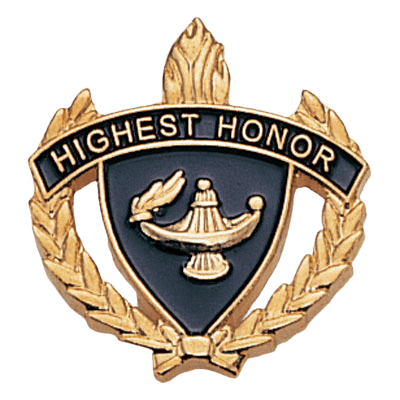 These HP Series Pins feature a lamp of learning in the center, a gold wreath border and Highest Honor imprint. Measures 7/8". Clutch-pin back for easy attachment to clothing. Ships from: Mount Vernon, New York. SKU: hp10-cm.