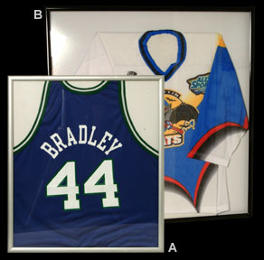 These Jersey Holders are constructed with an aluminum frame and black finish; a clear plexiglass front and a reversible backing which is white on one side and brown on the other. There is an insert that fits over the jersey and easily loads from the bottom. Offered in three different sizes below. Enough room has been allowed to put colored mat board (not included) over the white background to accent a color of the team you have placed in it. Small Jersey Holder: Baseball/basketball jerseys & racing jackets Interior Dimensions: 24" x 28" Large Jersey Holder: Football/hockey jerseys Interior Dimensions: 34" x 36" Medium Jersey Holder: Football/hockey jerseys Works well for large jerseys with the sleeves folded in. Interior Dimensions: 29"L x 26"W x 1"D Perfect for baseball season tournaments and championship games. Ships from: Marquette, Michigan. SKU: jerseyholder.
