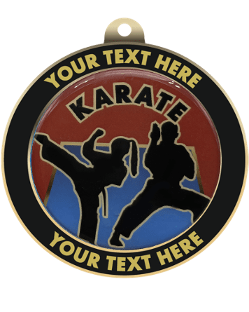 These colorful Karate insert medals feature a unique customizable front rim. Each medal also features an antique gold frame with a star design and 2" Epoxy dome decal insert for a spectacular look. Price includes a red, white and blue neck ribbon. Medal frame measures 2 3/4". Optional personalization on back. Wonderful for recognizing accomplishments and milestones. Ships from: Marquette, Michigan. SKU: karate-mc-pr-tc.