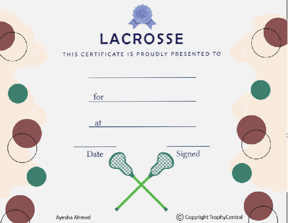 This is a free Lacrosse certificate template! Our free certificates were designed to be printable and use less ink to save you money. Simply press the View Now Button and then right click on the image and select Save File to download it. Award certificates measure 8 1/2" x 11". Outstanding for honoring achievement and success. SKU: lacrosse-free-tc.