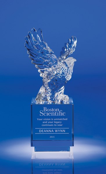 A symbol of grace and beauty, our very stately eagles are well-suited for high flying achievers. Perched upon their optic crystal bases, this eagle make an impressive statement. Measures: 8"H x 4.25"W x 4"D SKU: 247-jc.