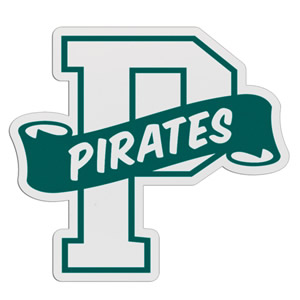 P-Shaped Mascot Badge with Choice of Back (Item #: letterbadges-p-pep)