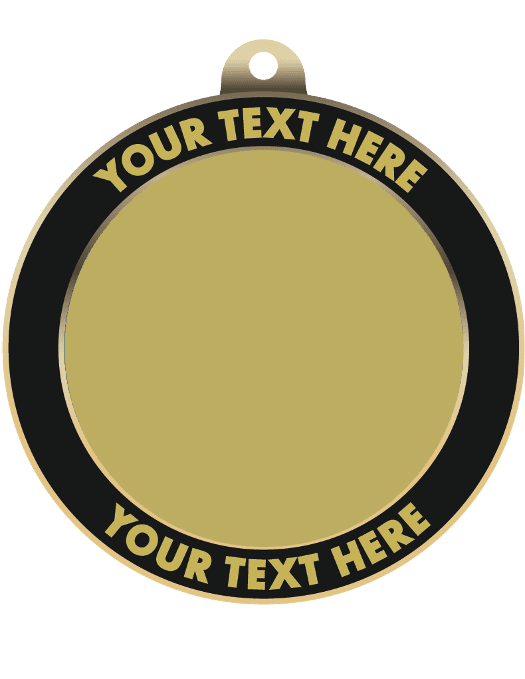 These medals feature a custom engraved ring on the from of the medal for your team, school or event name. The center of the medal can also be engraved with your logo or artwork in gold (or black if gold plate is chosen). Medals also include a red, white and blue neck ribbon. Antique gold, measures approximately 2 3/4" x 1/8" thick. Minimum Quantity: 10 (all must be the same on front). Optional personalization on back is also available and can be changed for each medal. Ships from: Marquette, Michigan. SKU: logo-rim-medal-tc.