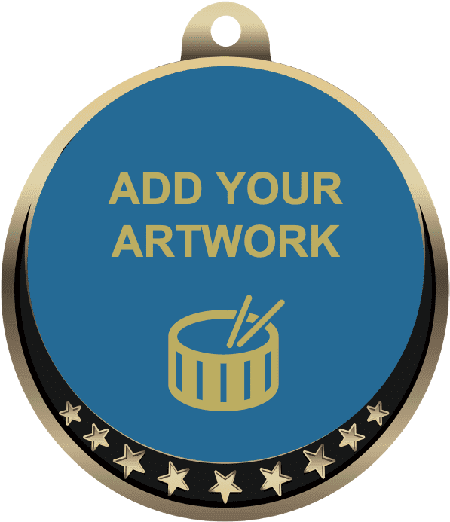 These fabulous medals feature your custom logo or artwork in gold (or black if gold place is chosen) engraved on the front of each medal and include a free red, white and blue neck ribbon. Medals measure approximately 2 3/8" in diameter. Minimum Quantity: 10 (all must be the same on front). Optional personalization on back is also available and can be changed for each medal. Ships from: Marquette, Michigan. SKU: logo-star-medal-tc.