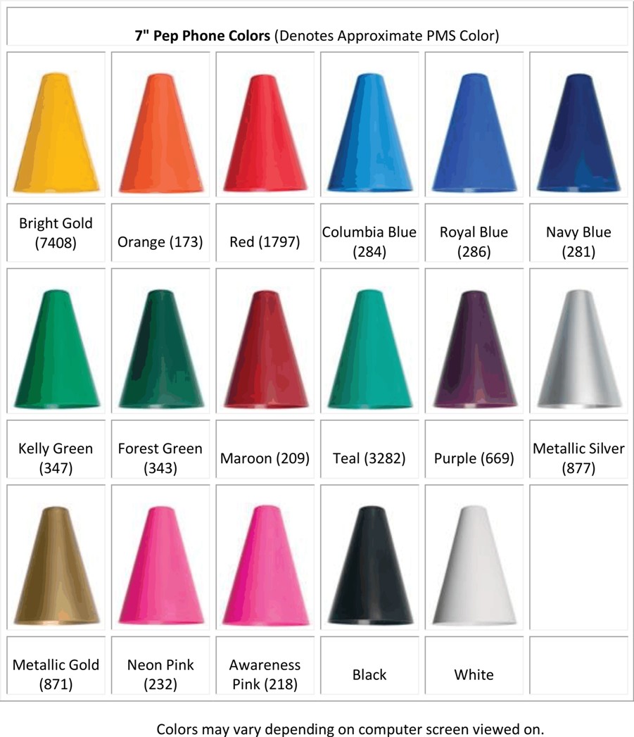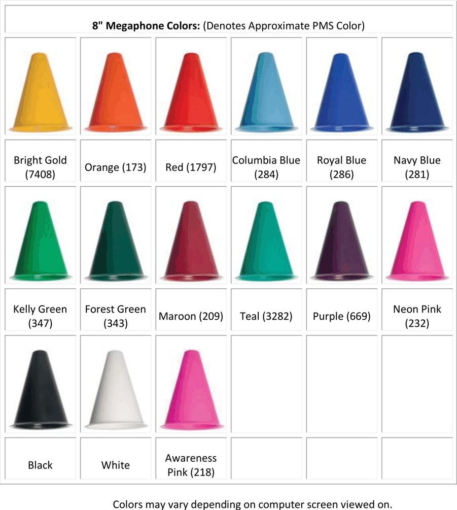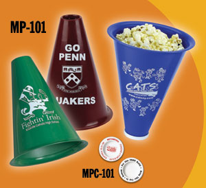 7" Pep Phones and 8" Megaphones are both fun and practical. Imprint a team logo on one side and a sponsor's name on the other. Optional pop-out disc allows them to be used as a container - filled with popcorn, peanuts or candy. The discs can have an optional imprint with a redeemable offer for added advertising value. Includes one-color, one-side imprint on pep phone/megaphone. Ships from: Fulshear, Texas. SKU: xp-101.