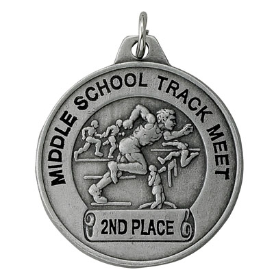 Our 1 1/2" TCM Series Silver Boys Track Front Imprint Medals include your school or organization around the outer perimeter, the year and place printed on the front, and a neck or drape ribbon! These medals are available in gold, silver or bronze finishes. Processing time: 4-6 days. Outstanding for rewarding track excellence and achievement. Ships from: Mount Vernon, New York. SKU: m156s-cm.