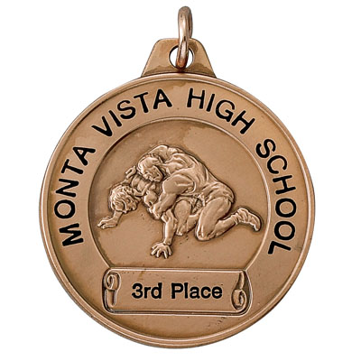 Bronze Wrestling Medal with Front Imprint (Item #: M162B-CM)
