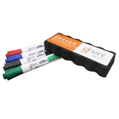Ghent wide chisel point markers write easily and wipe off cleanly. Ghent's Foam Eraser is specifically designed for dry erasable surfaces to give users a clean slate every time. SKU: m4-afe-gt.