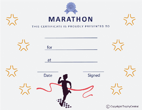 This Marathon template was designed exclusively for Trophy Central. It is a perfect and fun way to recognize marathon racers. Best of all, it's free! Our award certificates & templates were designed to be printable and use less ink to save you money. Simply press the View Now Button and then right click on the image and select Save File to download it. Templates measure 8 1/2" x 11". Outstanding for acknowledging achievement and success. SKU: marathon-m-tc.