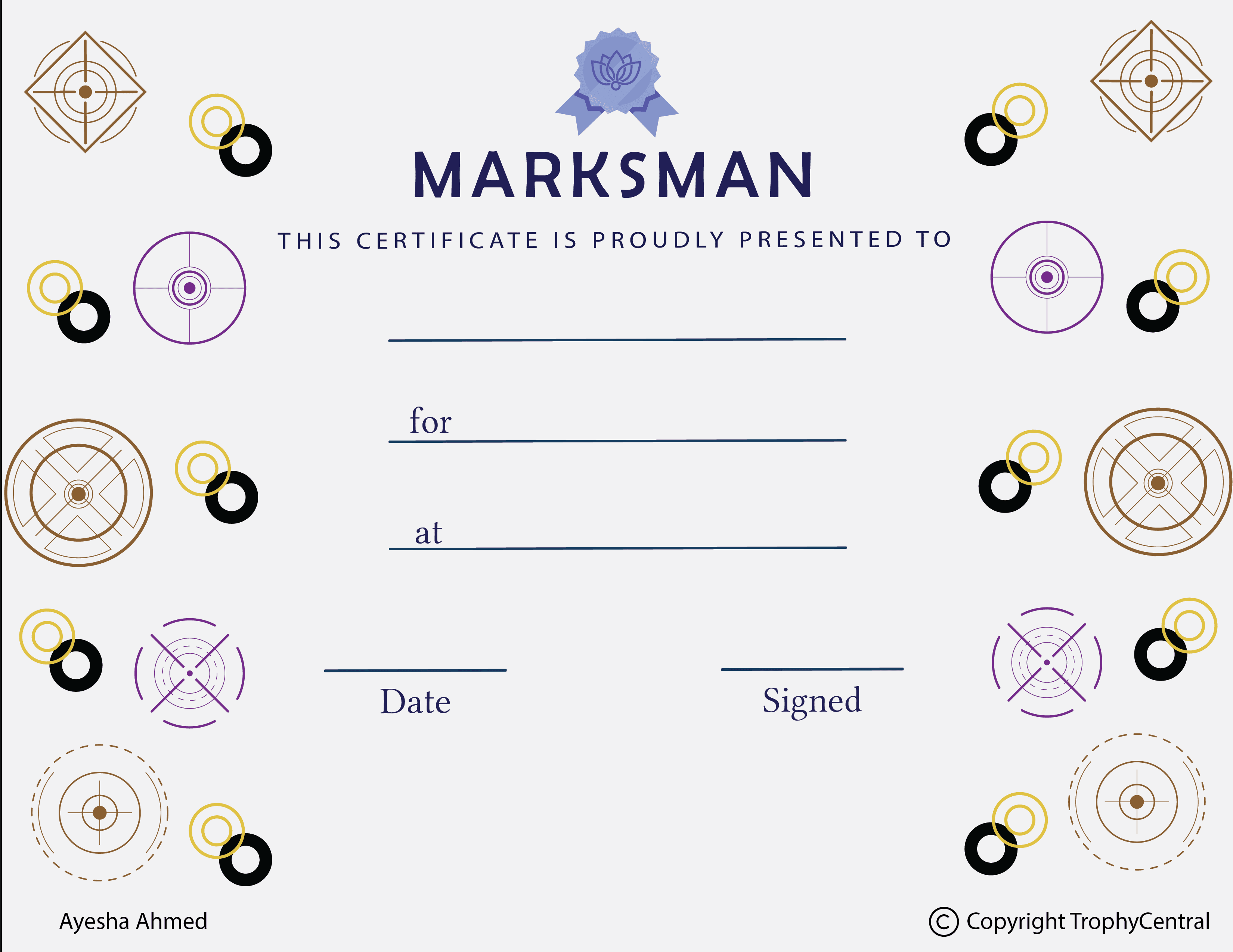 Marksman Award Certificate - Free Template (Item #: marksman-free-tc)