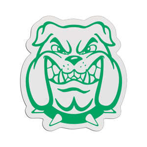 These Custom Bulldog Mascot Badges are made of lightweight, yet durable plastic. Choice of back: reclosable safety pin, refrigerator magnet or optional bulldog clip. Price of Bulldog Mascot Badges includes a one-color / one-side imprint! Ships from: Fulshear, Texas. SKU: mascotbadges-bulldog2.