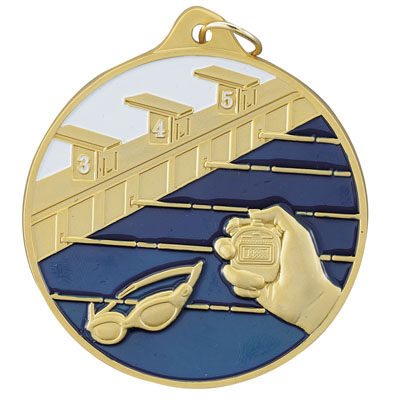 Quality 2-1/2 inch die cast, colorful Swimming ME Series Medals with neck or drape ribbon (ribbons available in a huge choice of colors)! Choice of gold, silver, or bronze medal finish. Optional personalized engraving. Perfect for swimming season competitions and meet awards. Ships from: Mount Vernon, New York. SKU: me106-cm.
