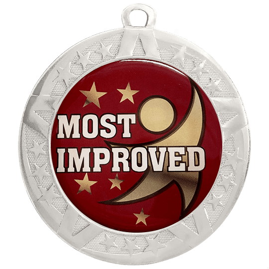 These most improved insert medals feature a 2 3/4 inch silver frame with a colorful 2 inch Epoxy dome subject sticker. Each medal also includes a red, white and blue neck ribbon. Optional personalization on back. Wonderful for celebrating accomplishments and milestones. Ships from: Marquette, Michigan. SKU: most-improved-jisf-tc.