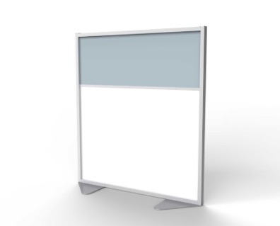 Floor Partition with Aluminum Frame and 2 Split Panel Infill, Porcelain and Silver Vinyl, 54"H x 48"W (Item #: mp5448-20-8f-GT)