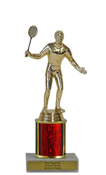 This classic column trophy is designed to save you money without sacrificing quality. It features a simple marble base, choice of column size and plastic badminton figure. Includes up to 3 lines of free personalized engraving. Display prominently to honor speed, agility, and shuttlecock mastery. Ideal for singles, doubles, and recognizing speed and agility. Ships from: Marquette, Michigan. SKU: mqtbadmscb.
