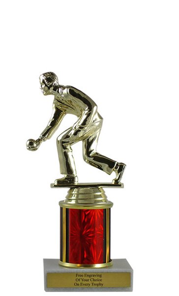 This classic column trophy is designed to save you money without sacrificing quality. It features a simple marble base, choice of column size and plastic bocce ball player figure. Includes up to 3 lines of free personalized engraving. Magnificent for honoring excellence and victory. Ships from: Marquette, Michigan. SKU: qsboccescb-qtt.