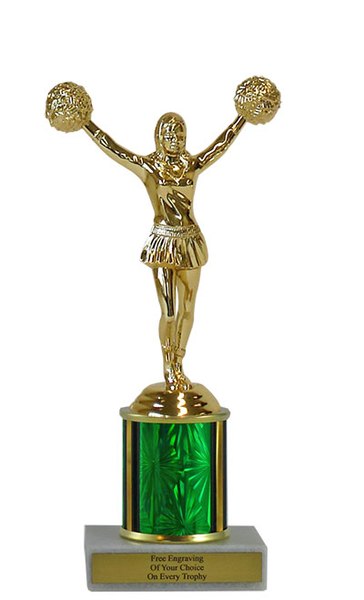 This classic column trophy is designed to save you money without sacrificing quality. It features a simple marble base, choice of column size and plastic cheerleader figure. Includes up to 3 lines of free personalized engraving. Magnificent for recognizing excellence and victory. Ships from: Marquette, Michigan. SKU: mqtcheerscb.