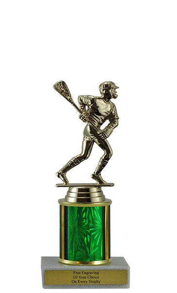 This classic column trophy is designed to save you money without sacrificing quality. It features a simple marble base, choice of column size and plastic lacrosse figure. Includes up to 3 lines of free personalized engraving. Magnificent for recognizing excellence and victory. Ships from: Marquette, Michigan. SKU: qslacrossescb-qtt.