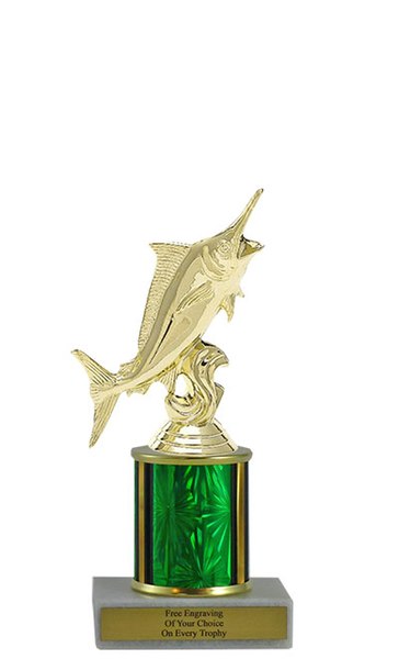 This classic column trophy is designed to save you money without sacrificing quality. It features a simple marble base, choice of column size and plastic marlin fish figure. Includes up to 3 lines of free personalized engraving. Magnificent for recognizing excellence and victory. Ships from: Marquette, Michigan. SKU: qsmarlinscb-qtt.