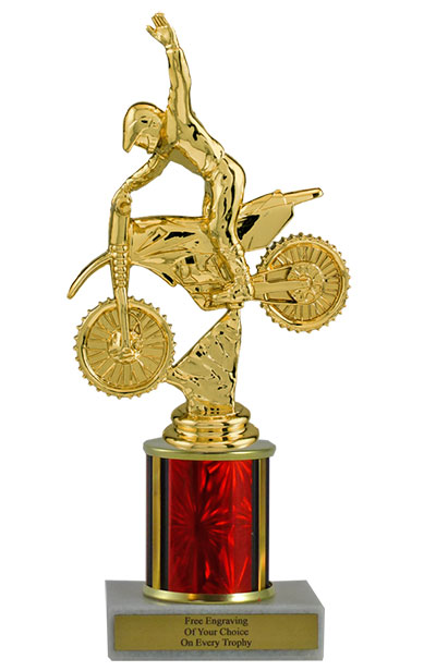 This classic column trophy is designed to save you money without sacrificing quality. It features a simple marble base, choice of column size and plastic motocross bike figure. Includes up to 3 lines of free personalized engraving. Magnificent for honoring excellence and victory. Ships from: Marquette, Michigan. SKU: qsmotorscb-qtt.