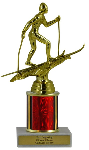 This classic column trophy is designed to save you money without sacrificing quality. It features a simple marble base, choice of column size and plastic cross country skiing figure. Includes up to 3 lines of free personalized engraving. A great choice for acknowledging excellence and victory. Ships from: Marquette, Michigan. SKU: qsskiccscb-qtt.