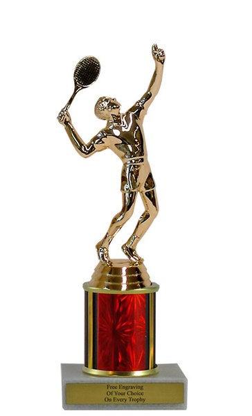 This classic column trophy is designed to save you money without sacrificing quality. It features a simple marble base, choice of column size and plastic tennis figure. Includes up to 3 lines of free personalized engraving. Ideal for tennis season tournaments and match celebrations. Ships from: Marquette, Michigan. SKU: mqttennisscb.
