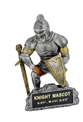 This realistic looking Knight trophy measures 6 5/8"h and is sculptured in resin. Includes up to 3 lines of free personalization. Be sure to also see our school and sports spirit Knight mascot medals and pins. Ships from: Mount Vernon, New York. SKU: mt2021-cm.
