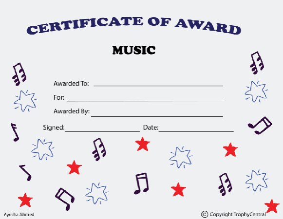 Music Award Certificate - Free Template (Item #: music-award-521-tc)