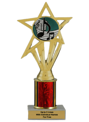 Our economy insert trophy features a real marble base, a 2-inch insert and up to 3 lines of free personalized engraving. Choice of 4 sizes and many column colors. Add up to three lines of text personalized engraving for free, including individual names! Topper: Music Insert. Outstanding for rewarding music skills and dedication. Ships from: Marquette, Michigan. SKU: music-e-single-i-tc.
