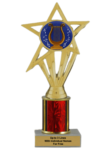 Our economy insert trophy features a real marble base, a 2-inch insert and up to 3 lines of free personalized engraving. Choice of 4 sizes and many column colors. Up to three text personalized engraving free, including individual names! Topper: Music Lyre Insert. Outstanding for honoring music skills and dedication. Ships from: Marquette, Michigan. SKU: music-lyre-e-single-i-tc.