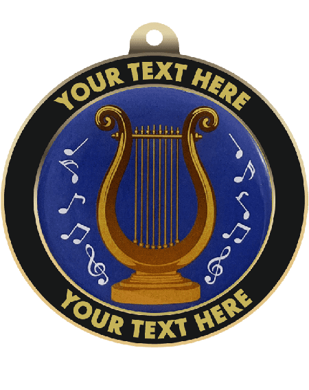 Music Lyre Insert Medal with Personalized Rim (Item #: music-lyre-mc-pr-tc)