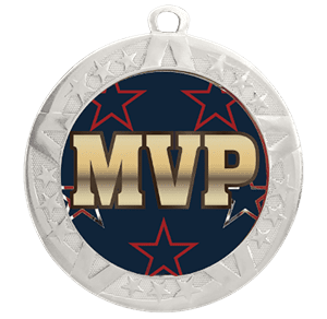 MVP Epoxy Dome Insert Medal - Silver Frame, 2 3/4" (Item #: mvp-jisf-tc)
