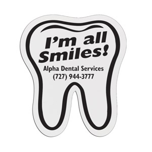 These Custom Tooth Shaped Badges are made of lightweight, yet durable plastic. Choice of back: reclosable safety pin, refrigerator magnet or optional bulldog clip. Price of Tooth Shaped Badges includes a one-color / one-side imprint! Ships from: Fulshear, Texas. SKU: namebadges-tooth.