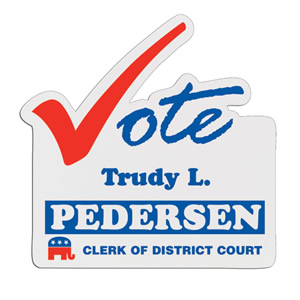 These Custom Vote (Election) Badges are made of lightweight, yet durable plastic. Choice of back: reclosable safety pin, refrigerator magnet or optional bulldog clip. Price of Vote (Election) Badges includes a one-color / one-side imprint! Ships from: Fulshear, Texas. SKU: namebadges-vote.